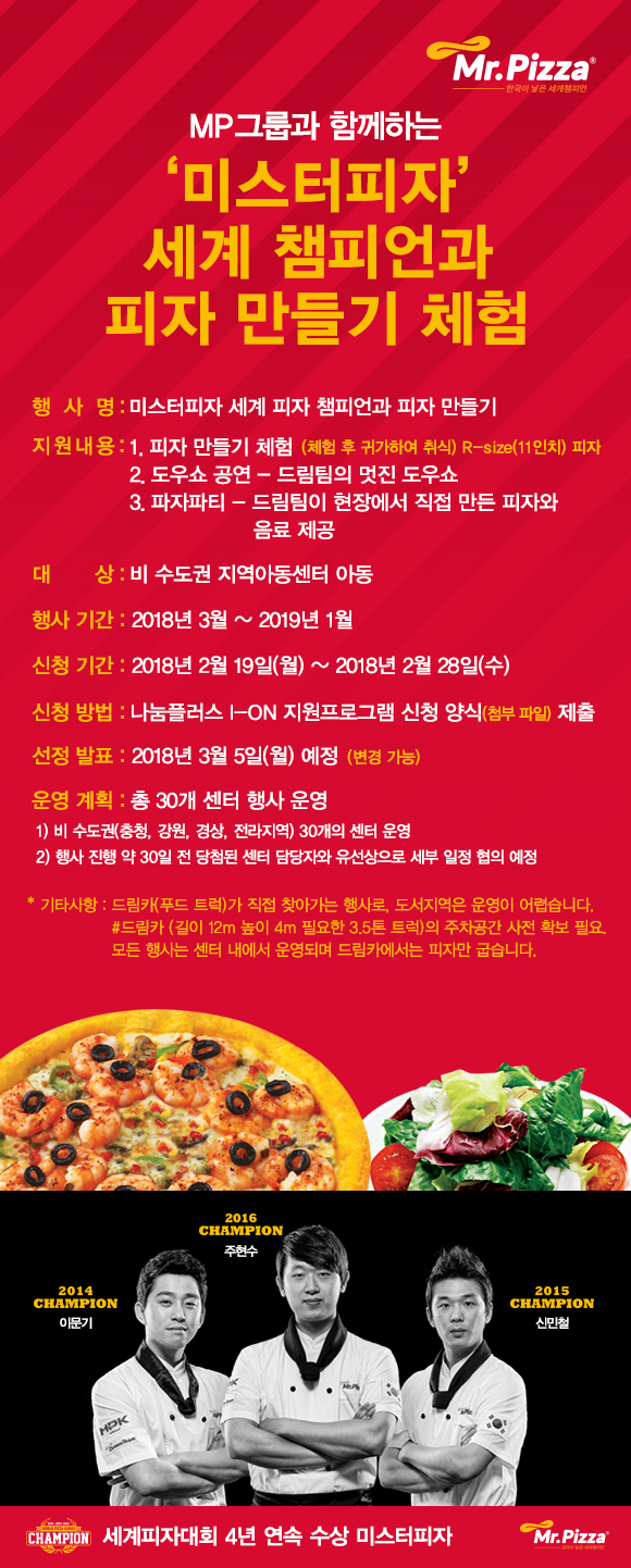 [프로그램] 2018년 MP그룹과 함께하는 세계 챔피언 미스터피자와 피자만들기 체험 지원사업