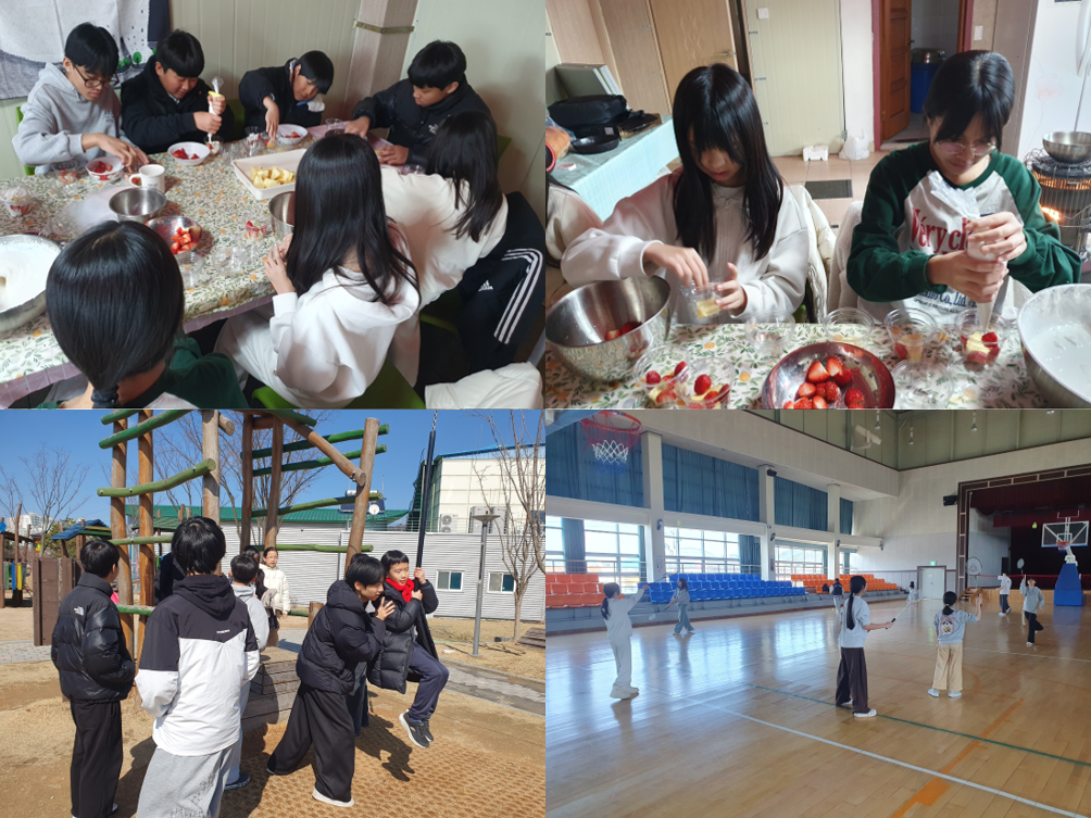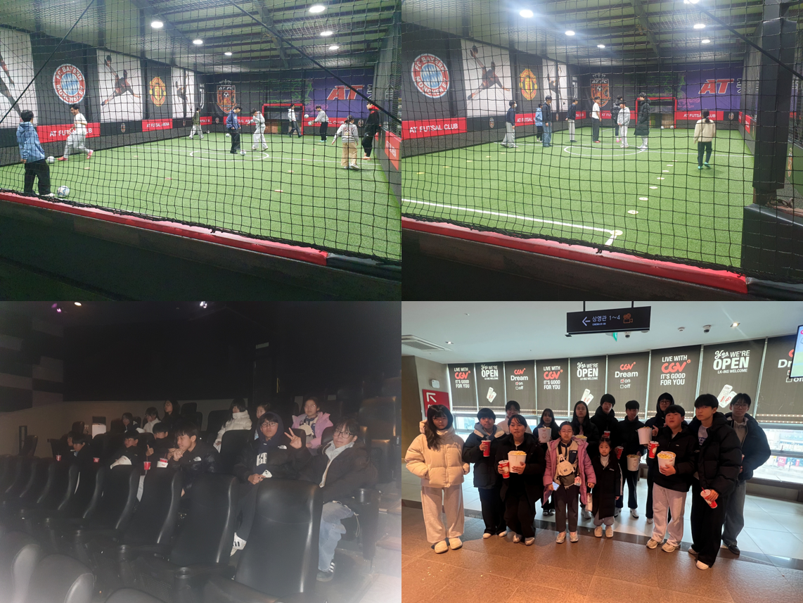 2월은 교육·정서·문화·지역연계 영역이 고르게 운영되며 아동들의 균형 있는 성장을 돕는 다양한 활동이 이루어졌다. 풋살 활동은 반복적인 참여를 통해 기초 체력을 기르고 팀원과의 협동심을 높이는 시간으로, 규칙을 지키며 함께 목표를 이루는 경험을 쌓을 수 있었다. 사회용어독해 프로그램에서는 시사 및 생활 속 용어를 쉽게 풀어 이해하며 사고력과 문해력을 확장하였고 자신의 생각을 정리해 표현하는 연습을 통해 의사소통 능력 또한 향상되었다. 정서프로그램으로 진행된 통기타 활동은 꾸준한 연습을 통해 코드와 리듬을 익히며 음악적 감수성과 집중력을 기르는 시간이 되었고 플룻 프로그램 역시 호흡과 음정 조절을 배우며 성취감을 느끼는 기회가 되었다. 쿠킹클래스에서는 재료를 다루고 음식을 완성하는 과정을 통해 협동심과 책임감을 배우고 올바른 식생활 태도를 자연스럽게 익힐 수 있었다. 지역연계프로그램으로 진행된 도서관 활동은 공공시설 이용 예절을 배우고 스스로 책을 선택해 읽는 경험을 통해 자기주도적 학습 습관을 형성하는 데 도움을 주었다. 오리엔티어링 특화프로그램은 지도 읽기와 미션 수행을 통해 문제 해결력과 공간 감각을 기르는 동시에 친구들과 협력하는 즐거움을 경험하게 하였다. 문화프로그램으로 진행된 외식 체험은 식사 예절과 공공장소 이용 태도를 배우는 시간이 되었으며 영화관람 활동은 문화생활을 함께 즐기며 감상을 나누는 소통의 장이 되었다. 토탈공예 활동은 창의력을 발휘해 작품을 완성하며 성취감을 높였고 어린이교통공원 체험은 야외 활동을 통해 학업을 하며 쌓인 스트레스를 푸는 계기가 되었다. 청소년문화체육관과 전주실내인라인스케이트장 활동에서는 다양한 신체 활동을 경험하며 균형감각과 체력을 기르고 도전 정신을 키울 수 있었다. 이처럼 2월은 학습과 예술, 신체활동과 문화체험이 조화를 이루는 프로그램 운영을 통해 아동들이 자신감과 협동심, 사회성 및 자기표현 능력을 고루 발달시킬 수 있는 의미 있는 시간이 되었다.