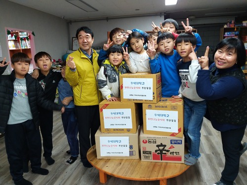 우석대에서 후원한 물품을 삼례읍에서 저희 센터로 읍장님이 직접 가지고 오셨어요.