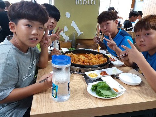 물놀이를 한다는 얘기에 아이들, 신이 나서 모였습니다. 먹어야 놀겠죠? 춘천닭갈비집인 비비리에서 우선 두둑하게 먹은 뒤 출발입니다.
