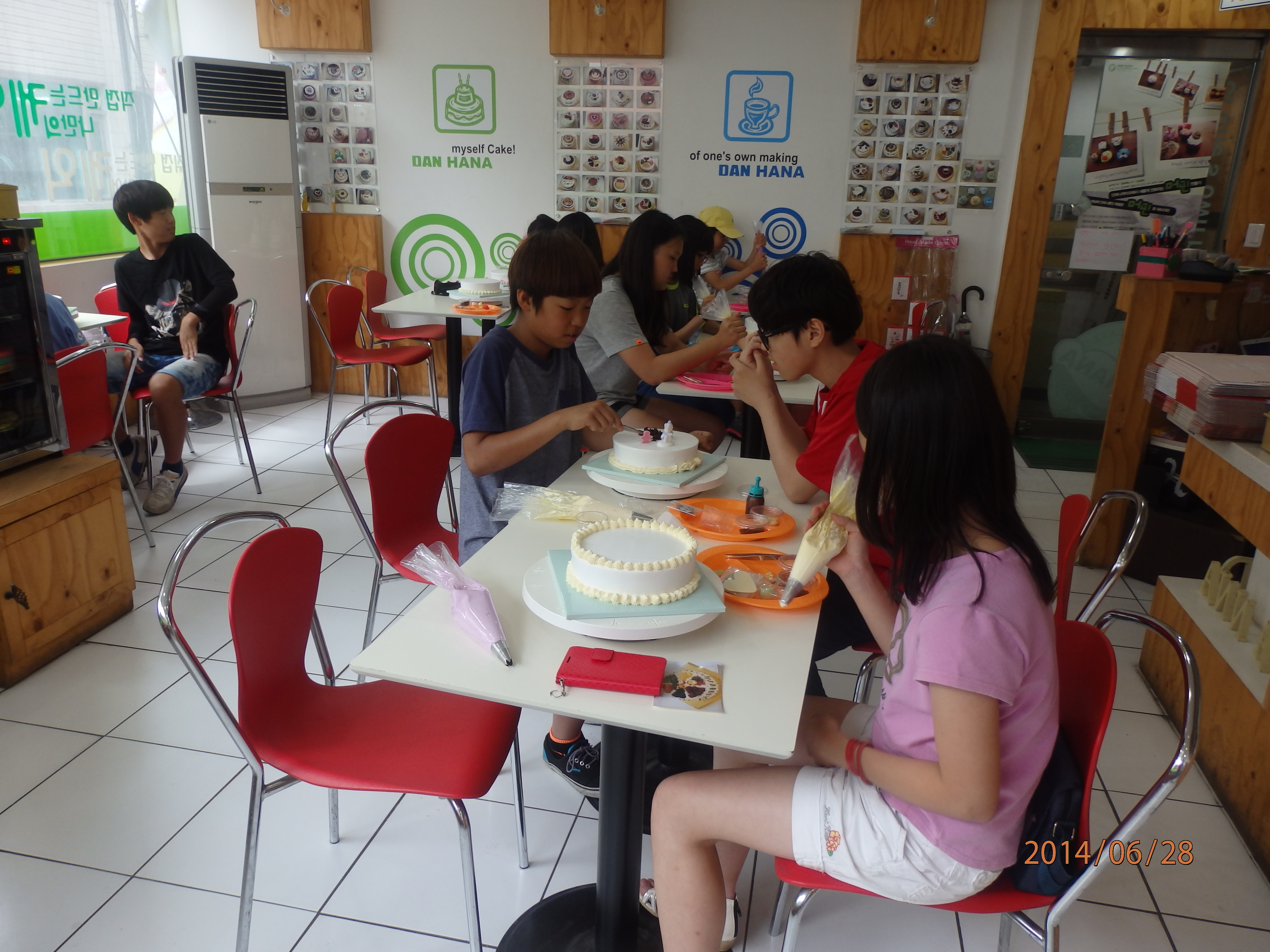 아이들과 같이 케이크를 만들면서 즐거운 시간을 보냈습니다.