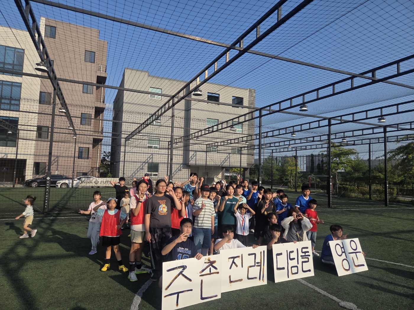또한, 응원단으로 참여한 친구들도 큰 역할을 했습니다. 직접 만든 플래카드를 들고 힘찬 응원을 보내며, 경기에 나선 친구들에게 든든한 힘이 되어주었답니다. 경기 중 위축된 친구를 따뜻한 말로 다독이는 모습에서는 아이들 간의 배려와 유대감이 고스란히 느껴졌습니다.