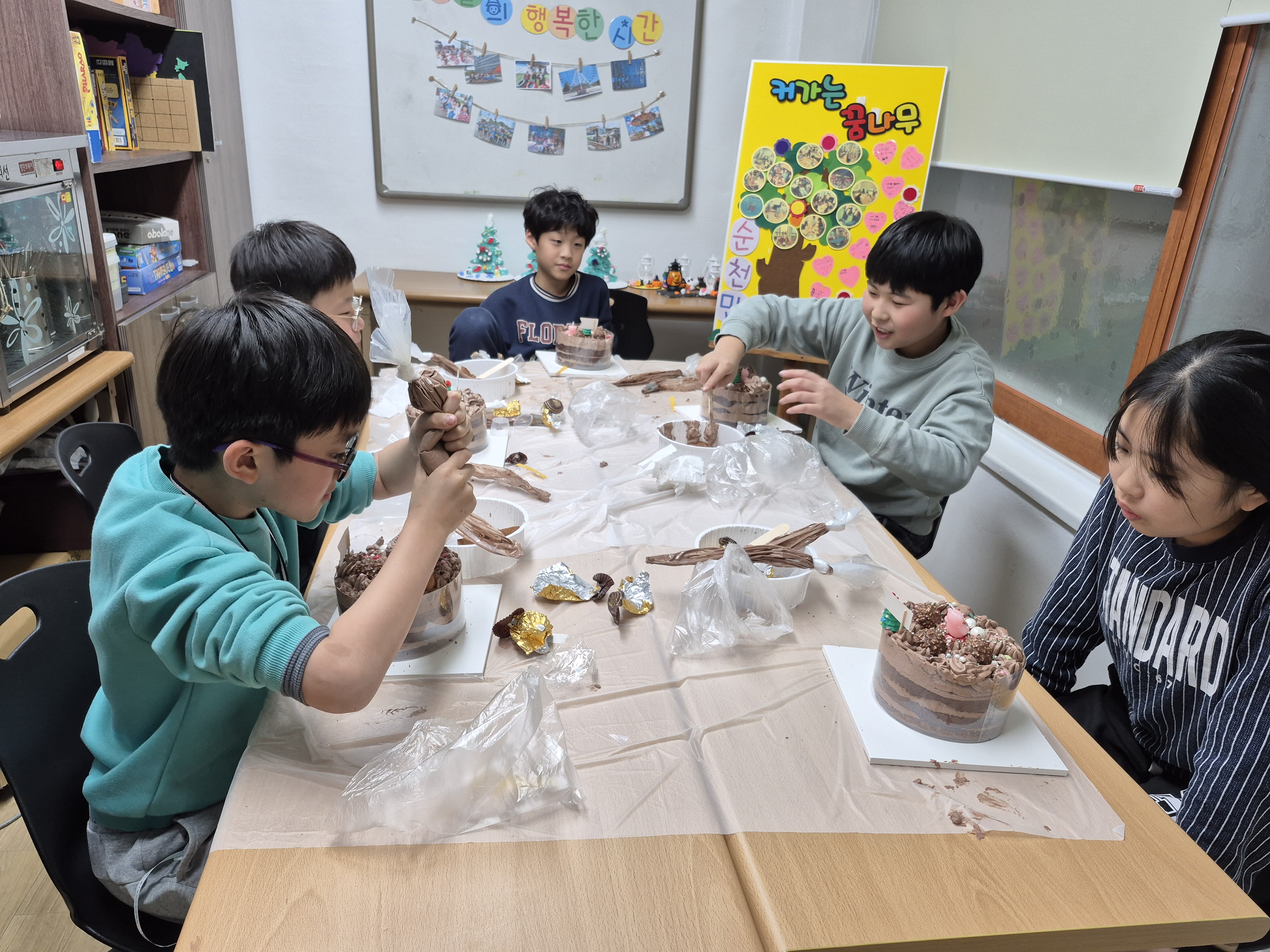 크리스마스를 맞이하여 케이크만들기를 하였습니다.