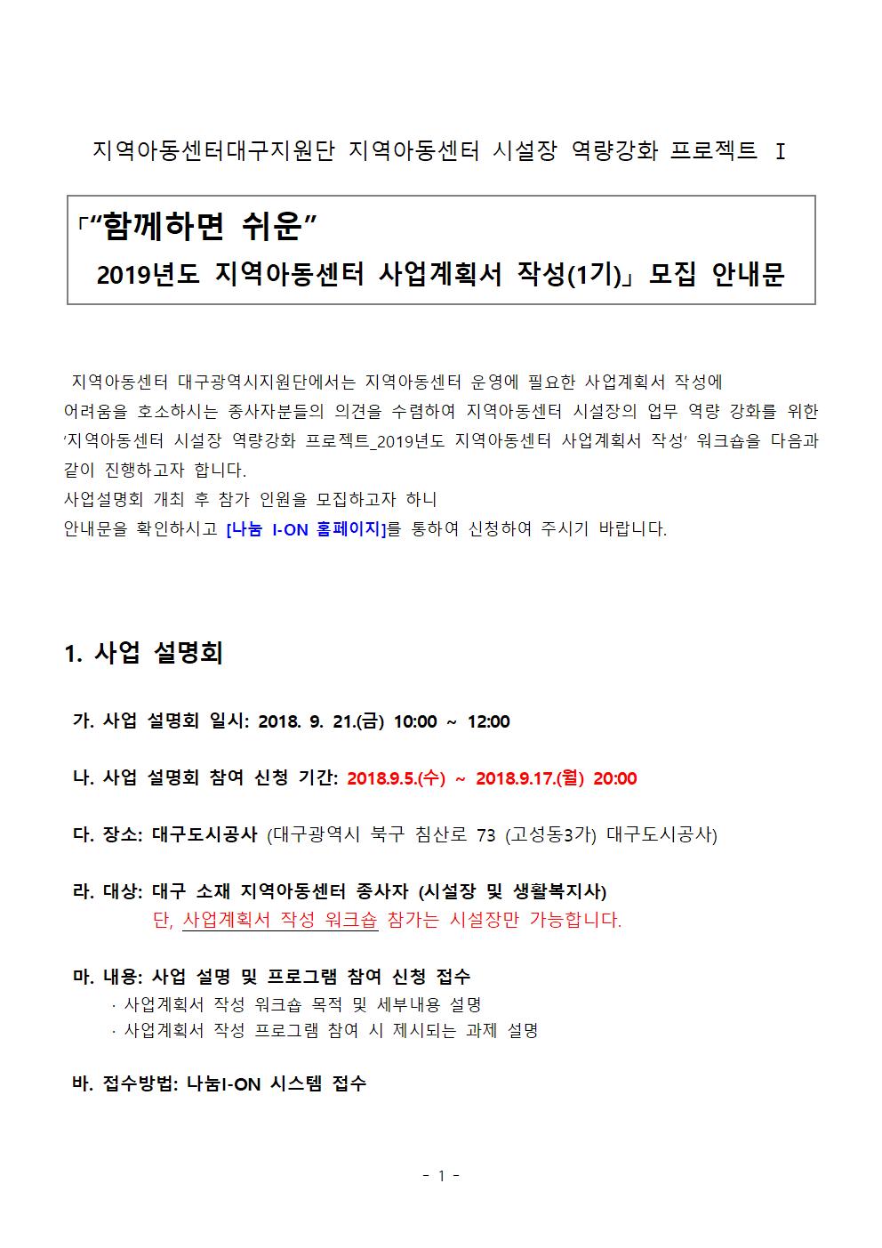 [프로그램] 지역아동센터 종사자 역량강화 프로그램 1 _ 설명회 개최 참가자 모집