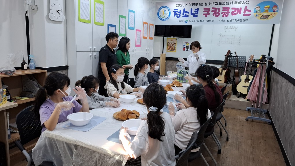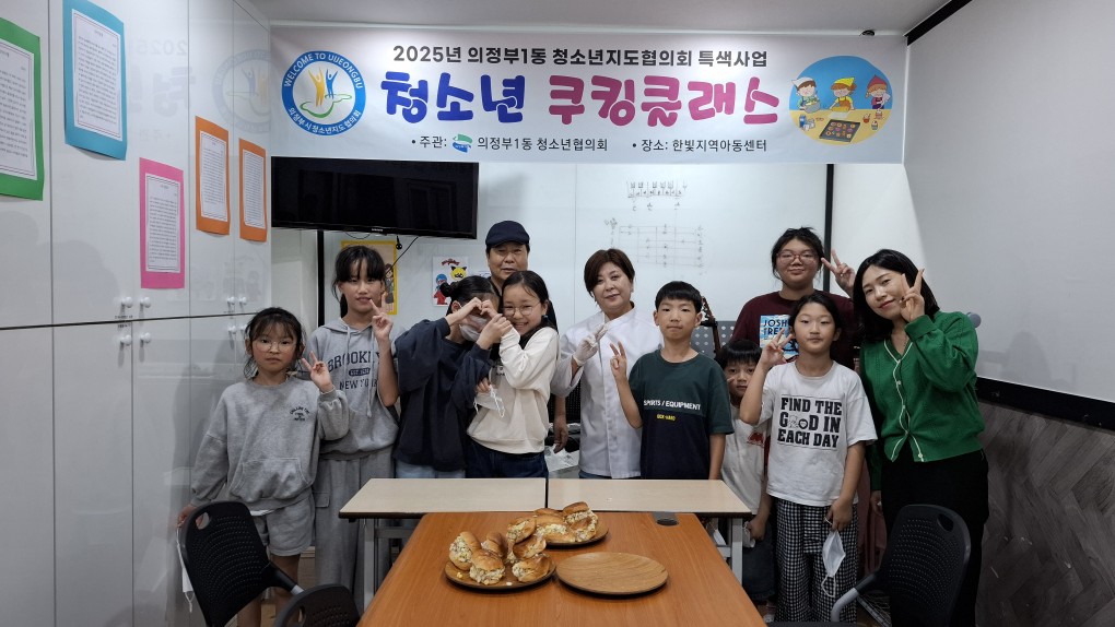 의정부1동 청소년지도자협의회 특색사업으로 쿠킹클래스를 한빛에서 진행하였습니다. 10명씩 신청으로 총 3회기중 첫번째 수업인 모닝빵을 만들었는데 모두 성실히 즐겁게 참여하였습니다.