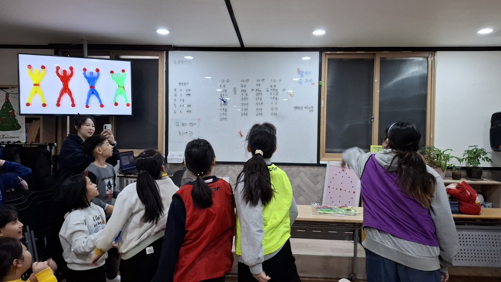 설을 맞이하여 정적인 민속놀이뿐만 아니라 '스파이더맨 놀이'나 '에어축구' 같은 현대적 감각의 놀이를 병행하여 아동들의 참여도가 매우 높았습니다. 한 아동은 이런 류의 놀이문화를 처음 경험했는데 흥미롭고 재미있었다고 하였습니다. 특히 저학년 아동들은 활동적인 스파이더맨 놀이에, 고학년 아동들은 전략이 필요한 윷놀이와 에어축구에 큰 흥미를 보였습니다. 만족도 조사에서 전체 아동 평균 90.7의 호평으로 모두 즐거운 시간이었습니다.