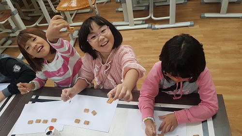 인성교육 받고 과자도 먹고 즐거운 시간이었습니다.