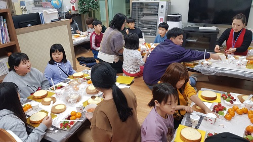 12월25일 크리스마스를 위해서 아이들과 케잌을 만들어 보았습니다. 강사 선생님께서 하나 하나 설명을 하면 아이들이 설명에 따라서 만드는데 각자의 스타일이 보이는 시간이었습니다. 케잌을 만들고 가정에 가지고 가서 맛있게 먹었다는 아이들도 있었고 동영상을 찍은 아이도 있었답니다.