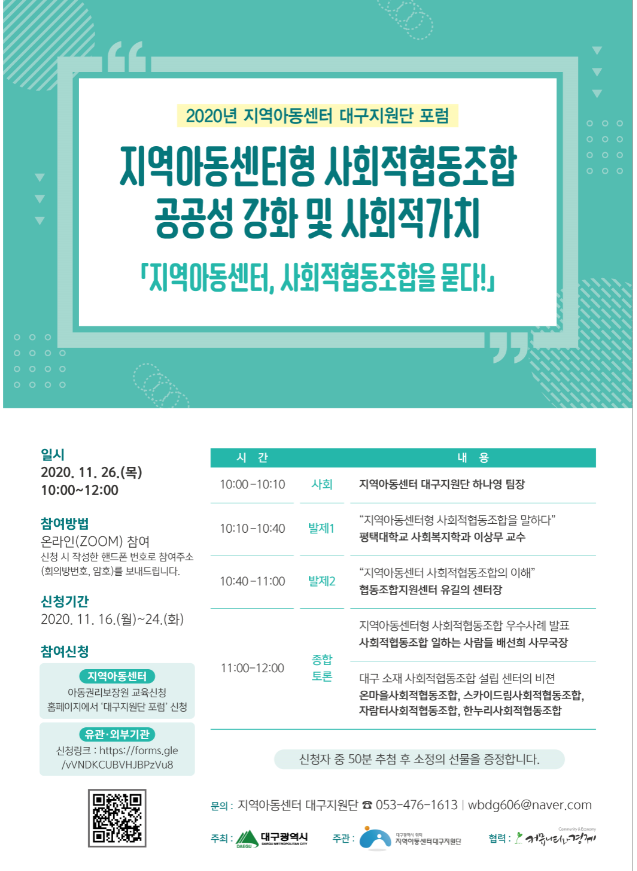 2020년 지역아동센터 대구지원단 포럼 (웹포스터)