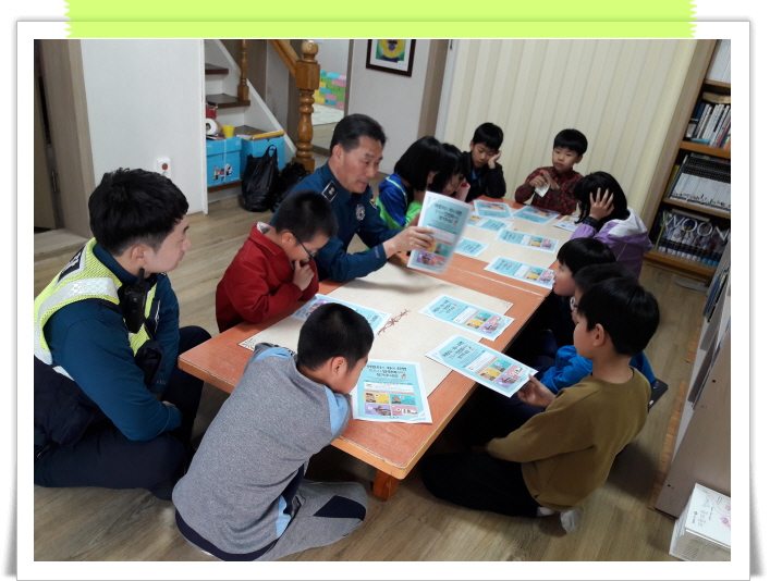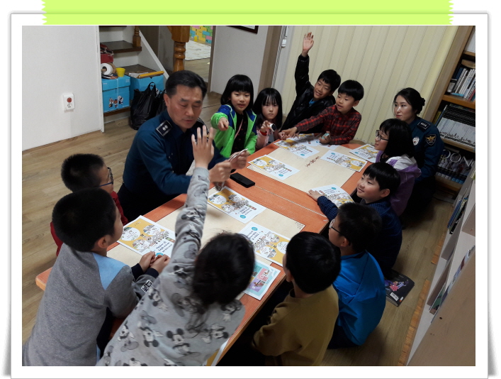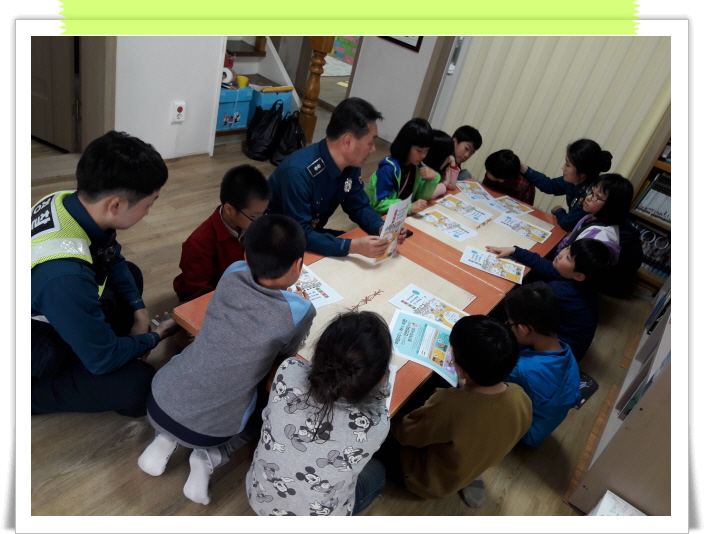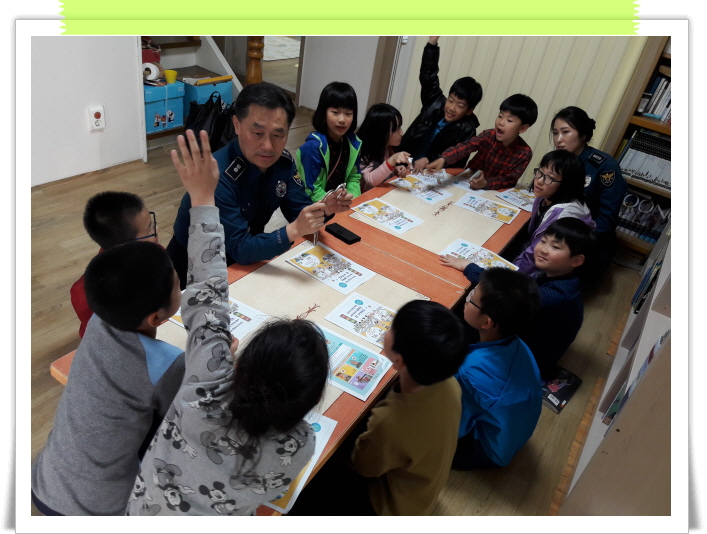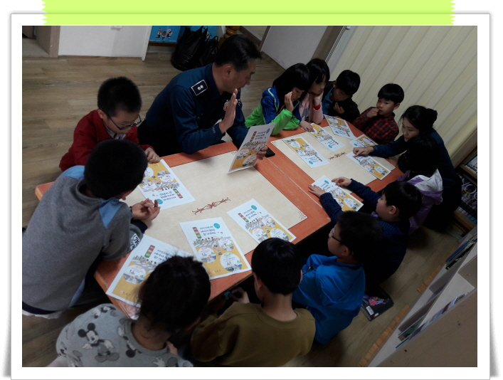 센터인근에 있는 파출소 소장님께서 오셔서 아이들에게 교통안전교육을 해 주셨어요 ~~~^^