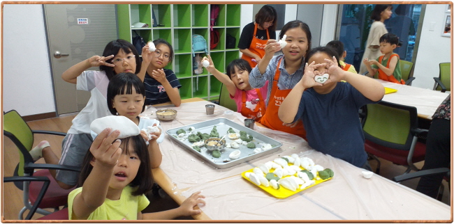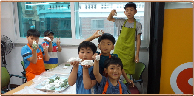 추석전에 아이들이 모여서 마을에서 살아가시는 할아버지 할머니들 드릴 송편만들기를 하였습니다.^^
