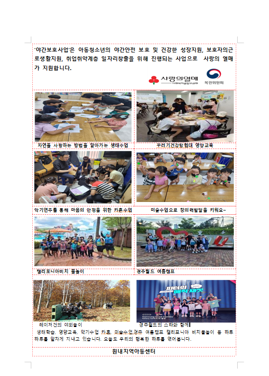 원내지역아동센터 야간보호사업 3분기 활동
