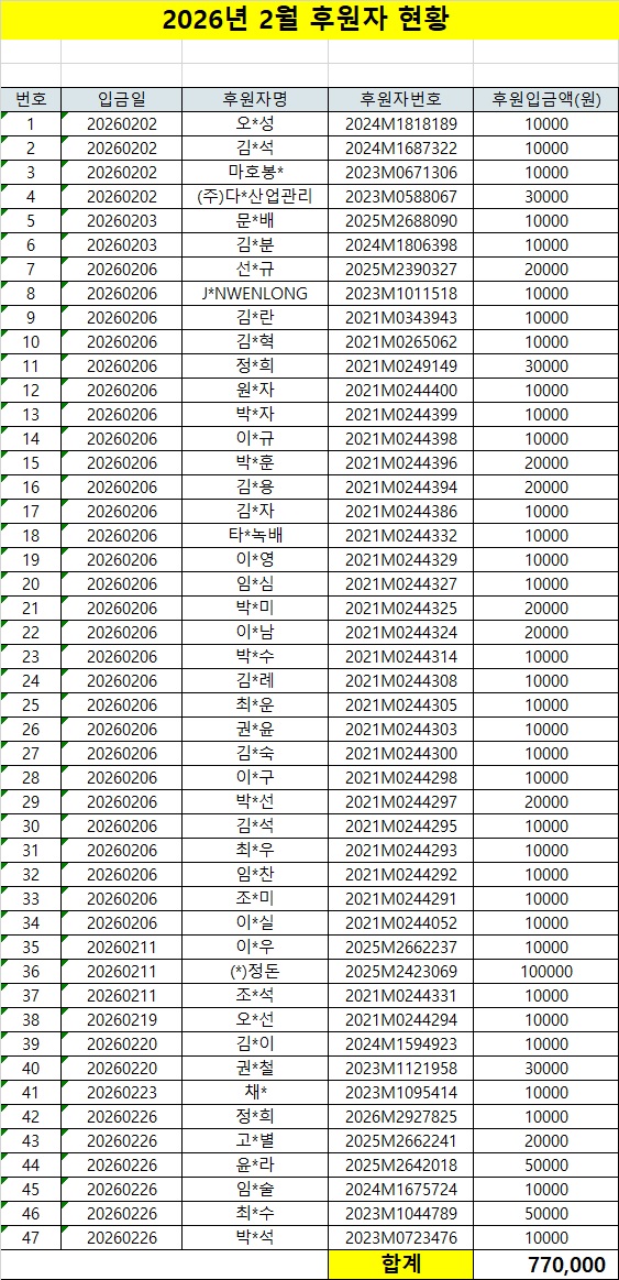 2026년 2월 후원금 입금현황