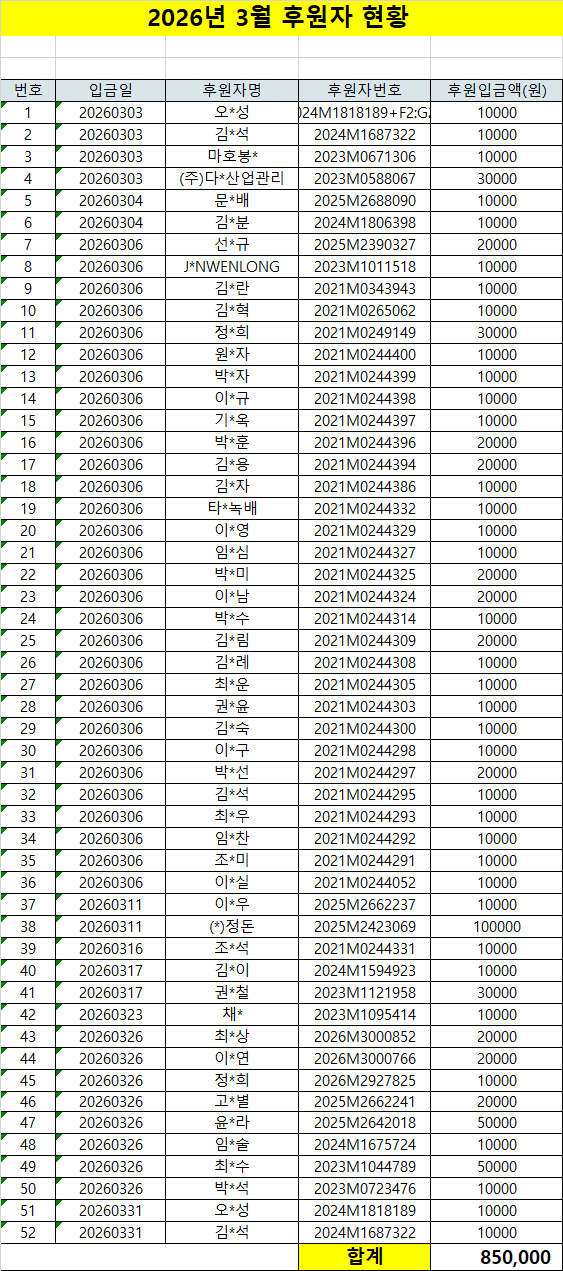 3월도 변함없이 예사랑지역아동센터에 귀한 후원금을 전달해주셔서 깊이