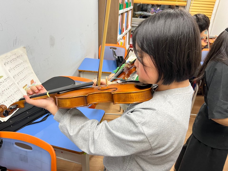 예사랑지역아동센터에서는 아이들의 풍부한 감수성과 정서적 안정을 위해 바이올린과 피아노 음악 프로그램을 진행하고 있습니다. 아름다운 선율을 통해 아이들이 자신을 표현하고 감정을 조절하며 건강하게 성장하도록 돕습니다.