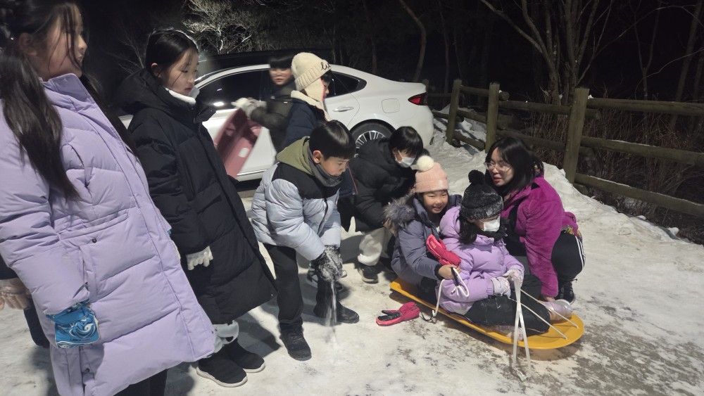 저녁식사후 아이들과 신나는 썰매~~ 추운것도 모르고 모두들 행복하고 즐거운 시간이었습니다.