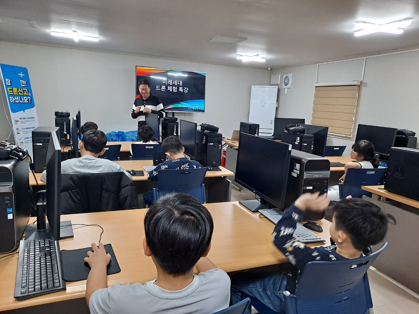 드론 체험장에 도착하여 간단하게 드론구조, 조종법등을 이론을 통해서 배우는 계기가 되었고 마지막으로 우리 친구들이 드론을 가지고 목표물을 통과 해 보는 등 즐겁고 재미있는 시간을 보내고 돌아왔습니다.