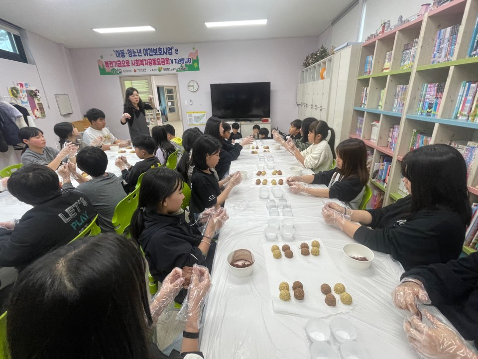 3월 26일(목), 직업문화체험 프로그램으로 진행된 파티쉐 체험 ‘두바이 쫀득쿠키 만들기’ 활동이 진행되었다. 아동들의 높은 흥미와 적극적인 참여 속에서, 평소 유행하는 ‘두쫀쿠(두바이 쫀득쿠키)’를 직접 만들어보는 기대감에 아동들의 만족도가 더욱 높게 나타났다. 아동들은 재료를 반죽하는 과정을 직접 수행하며 제과·제빵 직업에 대한 이해를 자연스럽게 높일 수 있었고, 손을 활용한 활동을 통해 집중력과 창의력을 발휘하는 모습을 보였다. 아동들은 완성된 쿠키를 보며 “요즘 유행하는 쿠키를 직접 만들어봐서 너무 재미있었어요”, “내가 만든 쿠키라서 더 맛있고 뿌듯해요”, “다음에 다른 것도 만들어보고 싶어요”와 같은 긍정적인 소감을 표현하며 활동에 대한 높은 만족감을 드러냈다. 또한 또래 친구들과 함께 재료를 나누고 순서를 지키며 협력하는 과정에서 자연스럽게 의사소통 능력과 사회성이 향상되는 모습도 확인할 수 있었다. 이번 활동은 직업에 대한 관심을 높이고, 스스로 만들어보는 경험을 통해 성취감과 자신감을 형성하는 데 긍정적인 영향을 준 의미 있는 프로그램으로 평가된다.
