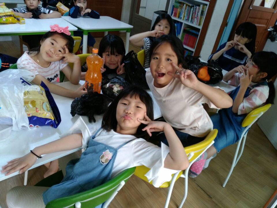 05.25 포스코 건설 봉사 선생님들과 함께 각각 조를 나누어 시장 먹거리 체험을 하는 시간을 가졌습니다.
